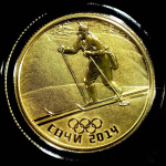50 рублей — Биатлон 2014 СПМД. В капсуле. Банковская сохранность монеты