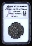 Драхма. Сасаниды. Хосров II. Чекан г. Нихавенд 621. В Слабе® MS 62»» 621 Ag UNC 11 Писистрат 11