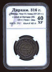 Дирхам. Саманиды. Наср II б. Ахмад и Халиф ал-Муктадир. Чекан г. Шаш 316. В Слабе® XF 40»» 316 Ag XF 6 mika-1 6