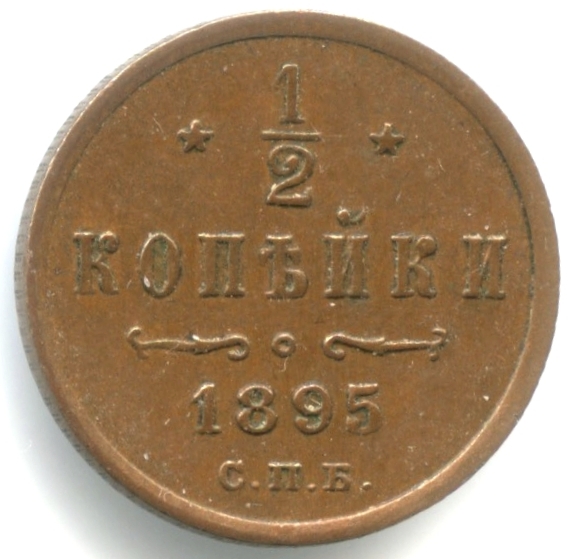 ½ копейки — Вензель Николая II 1895 CПБ. Кабинетная патина. Редкий год (Российская Империя)