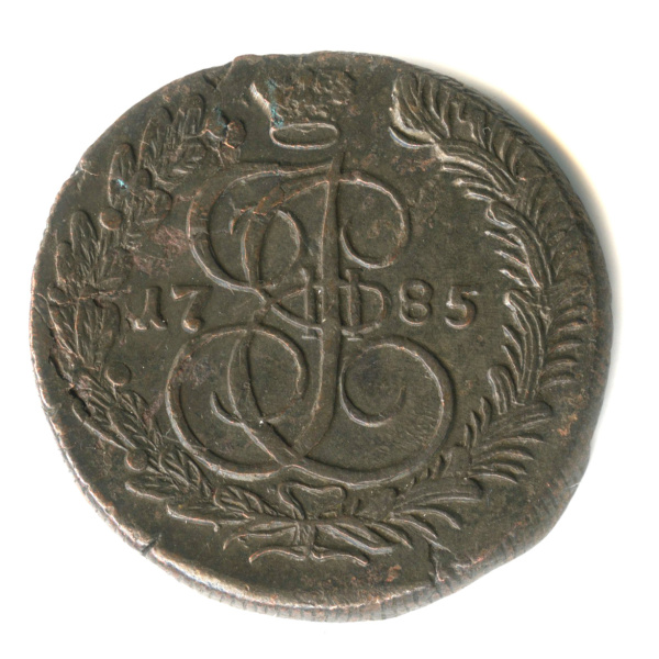 5 копеек — Вензель императрицы Екатерины II Великой. Сузун-Колыванская монета 1785 КМ (Российская Империя)
