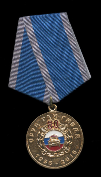 Медаль «80 лет ОРУД-ГАИ-ГИБДД». Крепление: булавка. Тяжелая (Россия)