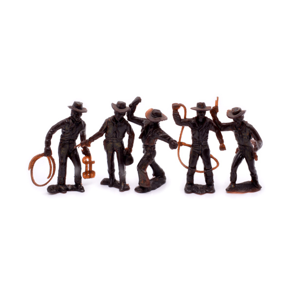 Лот пластмассовых игрушек «Ковбои». 5 шт. До 6 см (СССР)