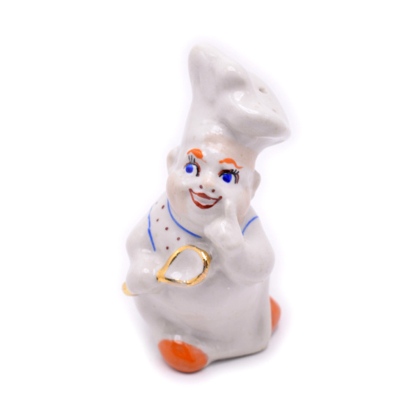 Солонка фарфоровая «Повар». Золочение. Размер 5×9 см (СССР)