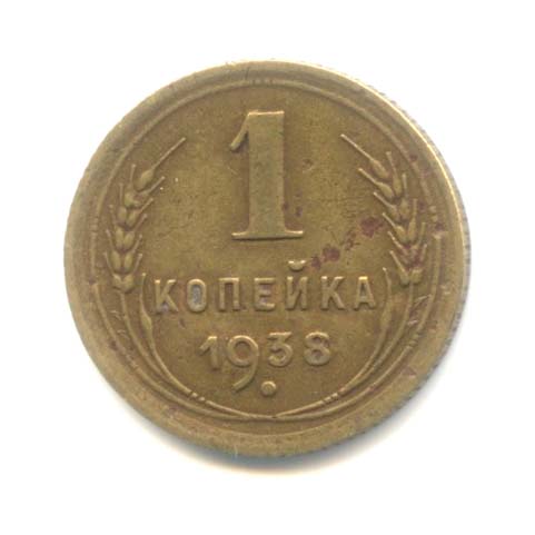 1 копейка — Венок 11 лент 1938 - (СССР)
