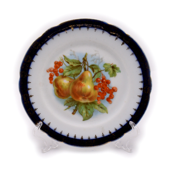 Тарелка фарфоровая «Груши». Золочение. ⌀ 18 см