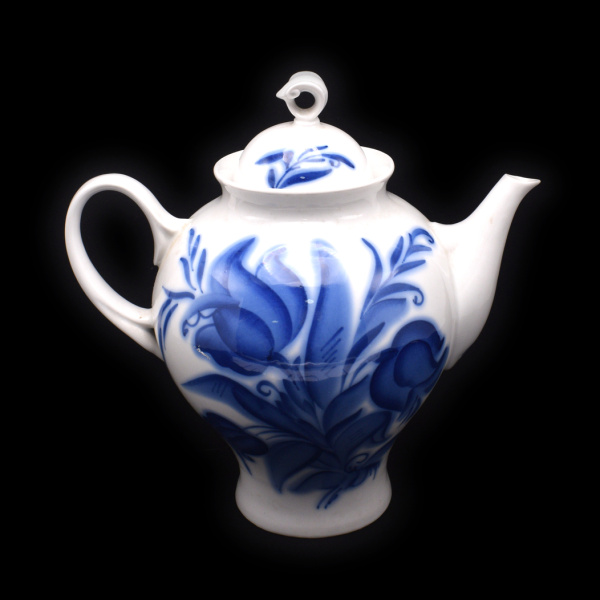 Чайник заварочный. Роспись. Фарфор. Ленинградский опытный завод (ЛОЗ). Размер 25×26 см (СССР)