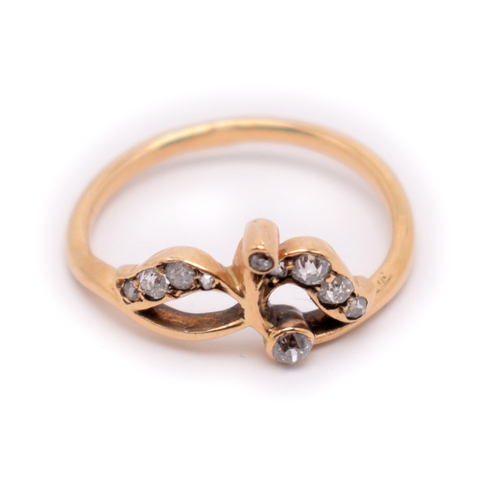 Кольцо с бриллиантами 8 шт 0,015 0,12 карат, 1 бриллиант 0,02, 1 бриллиант 0,015. Золото 500 пробы. ⌀ 16 мм. 2,19 г