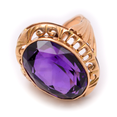 Кольцо Золото 583 пробы. Вставка: Аметист (Урал) 17×11 мм 16 карат. ⌀ 17 мм. Вес 7,61 г