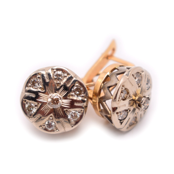 Серьги с бриллиантами 14шт х 0,021 0,29 карат. Золото 585 пробы. 15,11 г. Длина 2,2 см