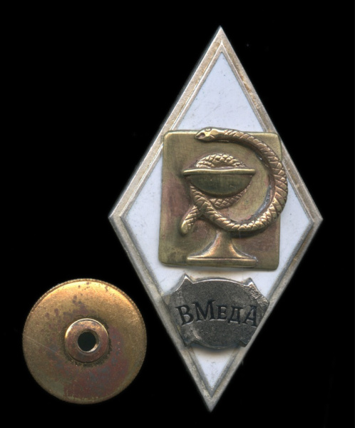Знак ромб «ВМедА». Крепление: винт. Легкий, эмаль (СССР)