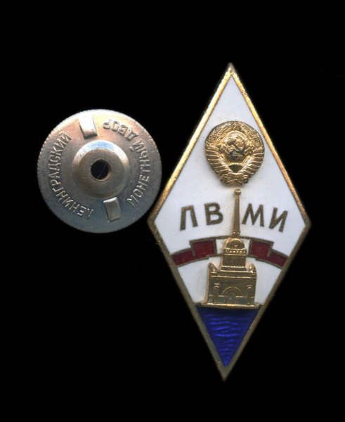 Знак «ЛВМИ». Крепление: винт. Тяжелый, эмаль. ЛМД (СССР)