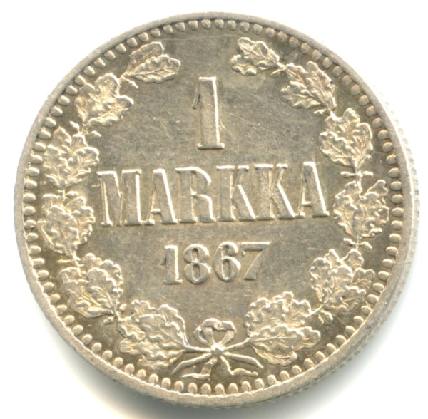 1 марка — Для Финляндии 1867 S. Непростой год. Очень редкая в подобной сохранности и штемпельном блеске (Российская Империя)