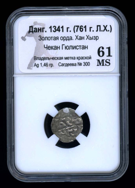 Данг. Золотая орда. Хан Хызр. Чекан Гюлистан. Владельческая метка краской. 1341. В Слабе® MS 61 (Русское царство)