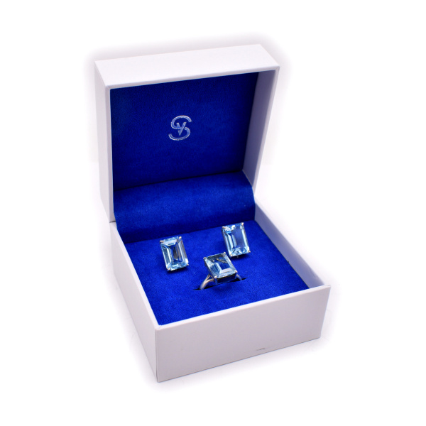 Комплект серьги с кольцом. Серебро 875 пробы. ⌀ 18,5 мм. 10,83. В коробке Соколов (СССР)