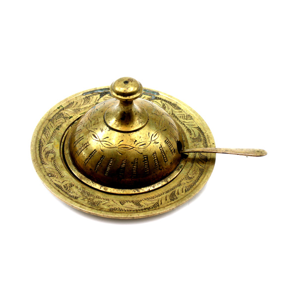 Икорница с ложкой. высота блюдца с крышкой 12×9 см, размер ложки 13×1 см (СССР)