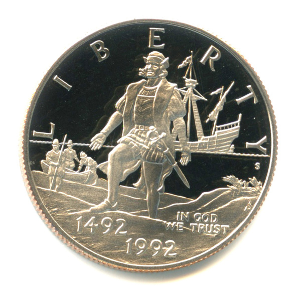 ½ доллара — 500 лет путешествию Колумба S (Коллекционная монета) 1992 S. В капсуле, с сертификатом (США)