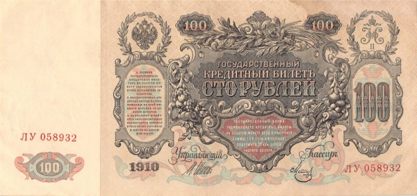 100 рублей 1910. Шипов — Метц (Российская Империя)