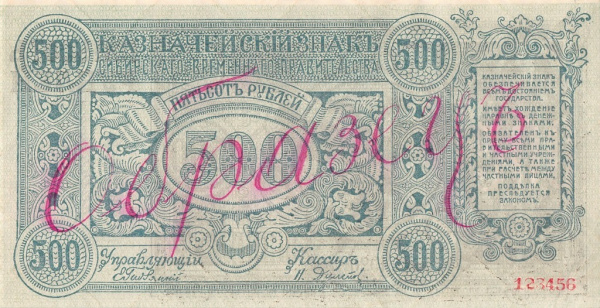 500 рублей Чита. Атаман Семенов. Образец 1920. Номера — лесенка. Редкость (Россия: Гражданская война)