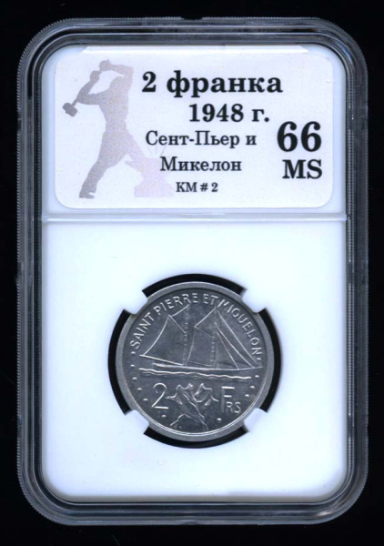 2 франка (Регулярный выпуск) 1948. В Слабе® MS 66 (Сен-Пьер и Микелон)