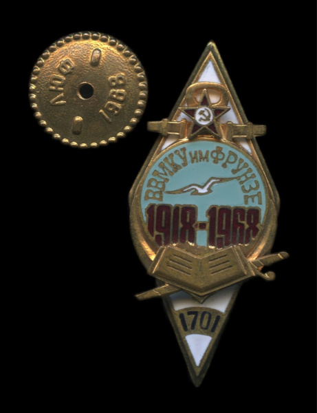 Знак «50-летие Высшего военно-морского училища имени М. В. Фрунзе». Крепление: винт. Тяжелый, эмаль (СССР)