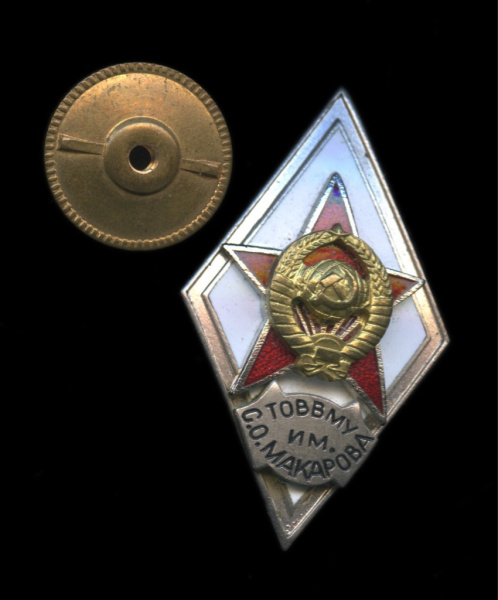 Знак «ТОВВМУ им. С.О. Макарова». Крепление: винт. Тяжелый, эмаль (СССР)