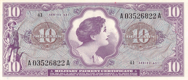 10 долларов (Pick: # m74) ND (1969). Военный сертификат. Большая Редкость ND(1969) (США)