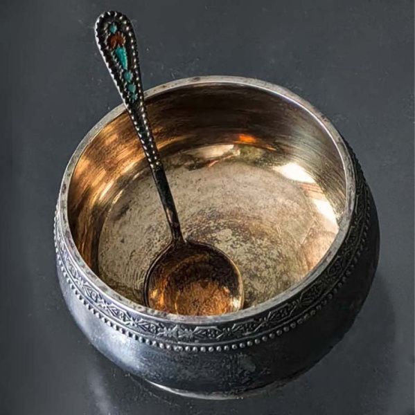Солонка. Серебро 875 пробы. Размер 3,5×2,5 см. 14,1 г