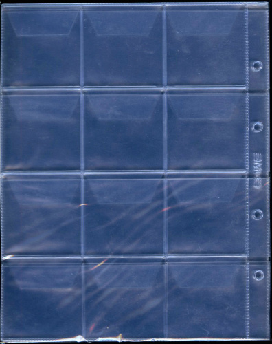 Листы в альбом под монеты стандарта OPTIMA. «Кармашек» с клапаном, на 12 позиций. Новые, в упаковке — 10 шт. 250×200мм (Россия)