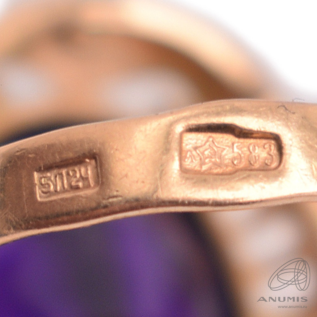 Кольцо Золото 583 пробы. Вставка: Аметист (Урал) 17×11 мм 16 карат. ⌀ 17 мм. Вес 7,61 г