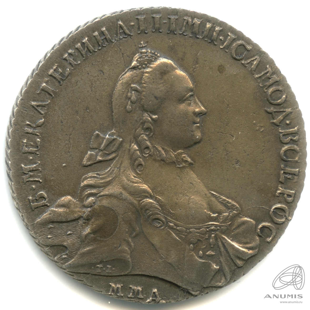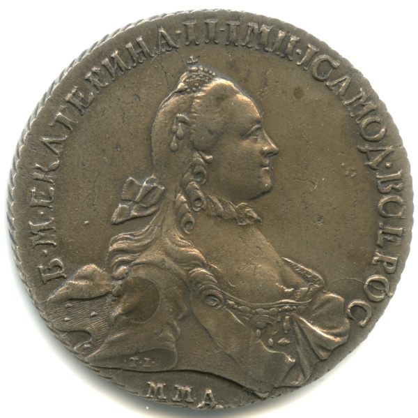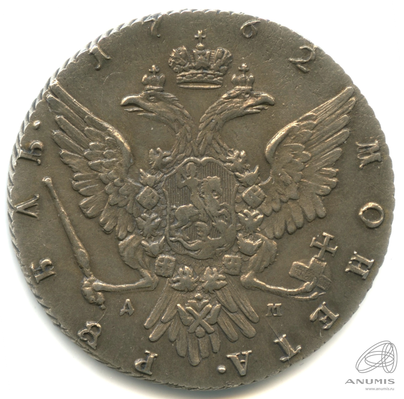 Монета регулярного выпуска: 1 рубль 1762 года «Портрет Екатерины II. С шарфом на шее». 1 рубль 1762 — 1776 гг. Российская Империя: Екатерина II (1762 — 1796). Монетный двор: Московский монетный двор, г. Москва. Минцмейстер: Данила Мочалкин (1762, 1770). Гравер: Тимофей Иванов. Серебро 750, 24 г, ø 38−39 мм, Гурт: Шнур. Тираж: 406200 шт.