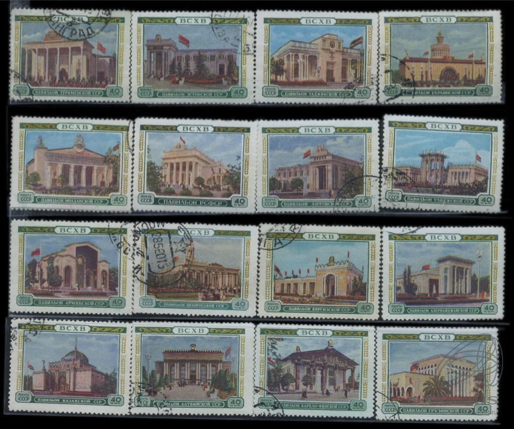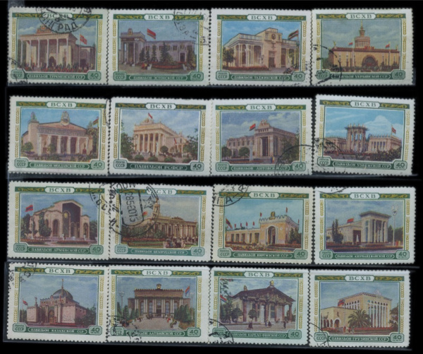 Лот почтовых марок «ВСХВ. Павильоны». 16 шт. Полная серия