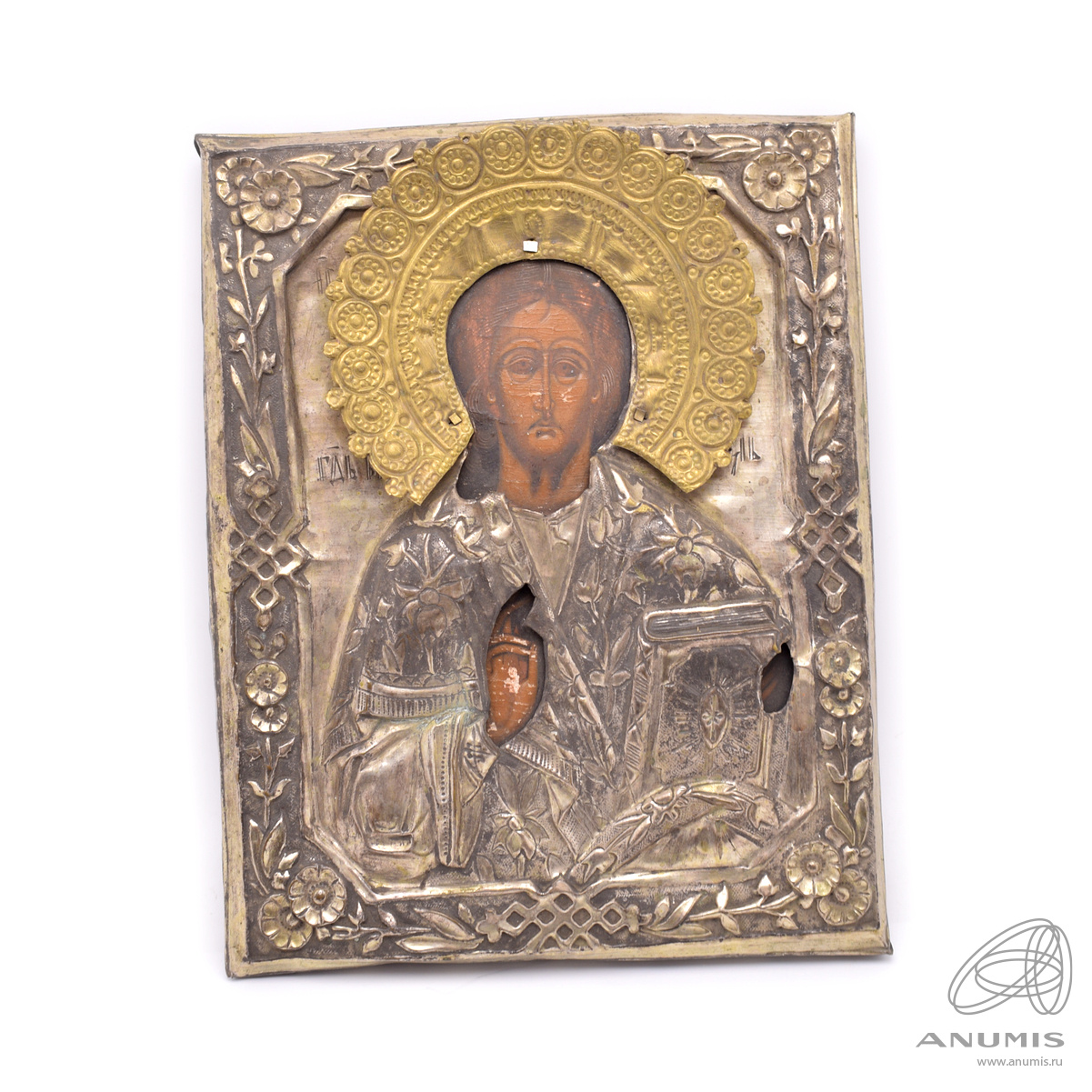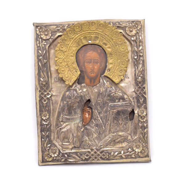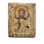 Икона «Спас Вседержитель» (Пантократор) в латунном окладе. Дерево. Размер 17,5×22,5 см