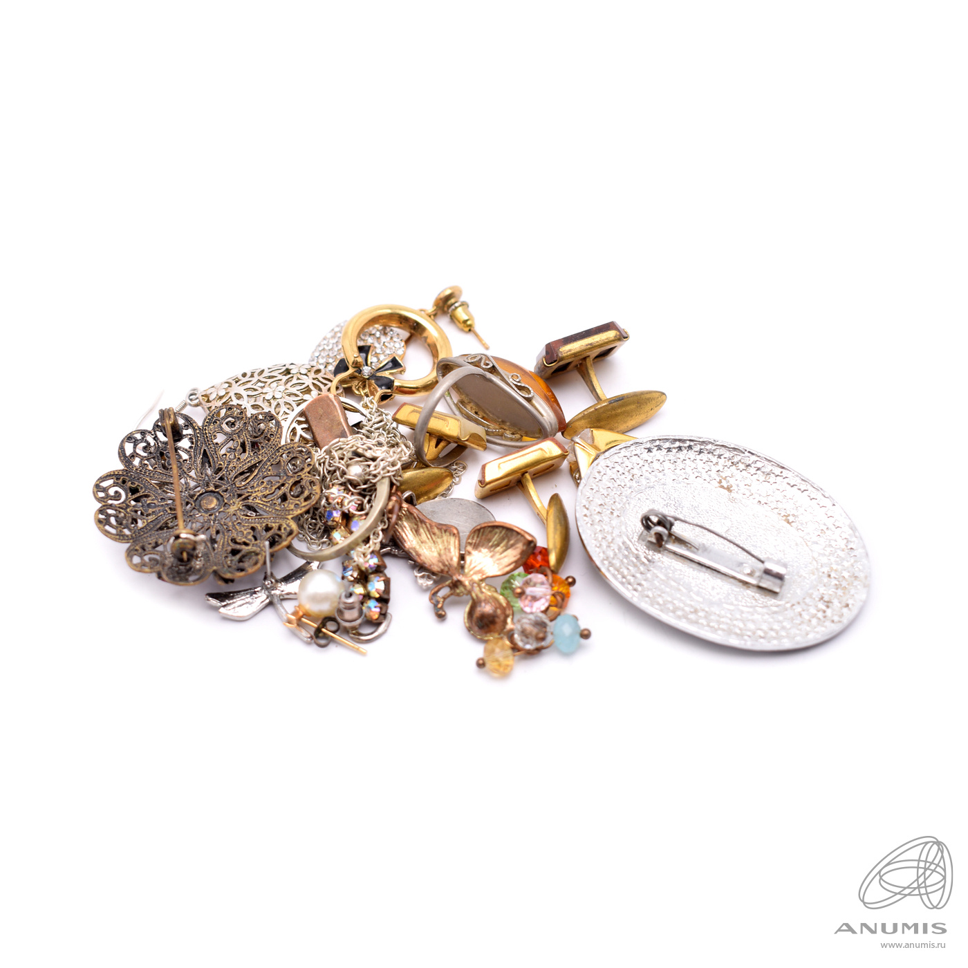 Лот бижутерии: кольца, брошки, запонки, серьги