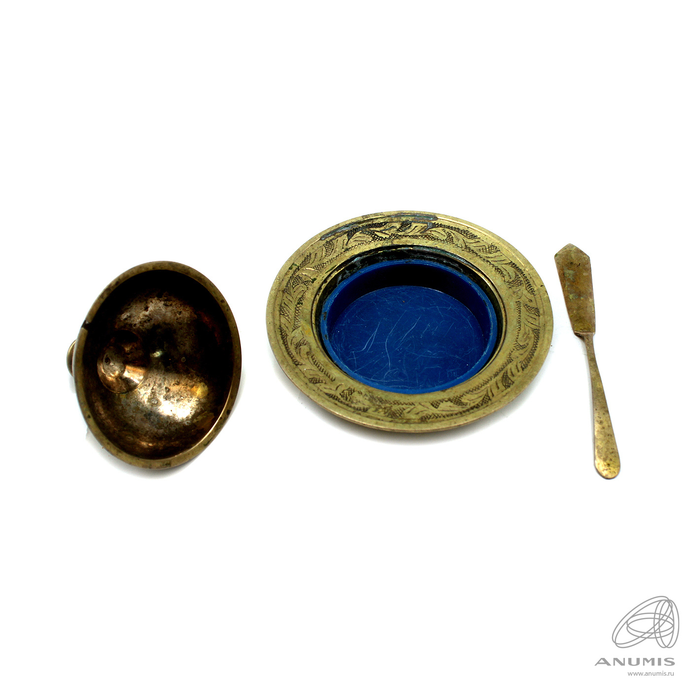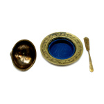 Икорница с ложкой. высота блюдца с крышкой 12×9 см, размер ложки 13×1 см