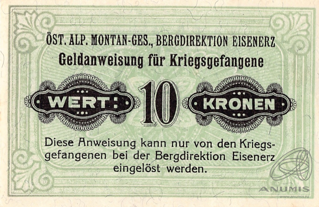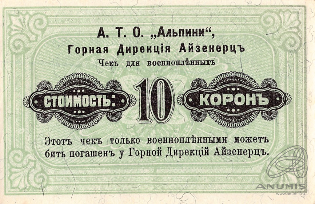 10 крон Офицерскйи лагерь для русских военнопленных «Альпини» 1916. Коллекция Г. и Я. Абезгузов
