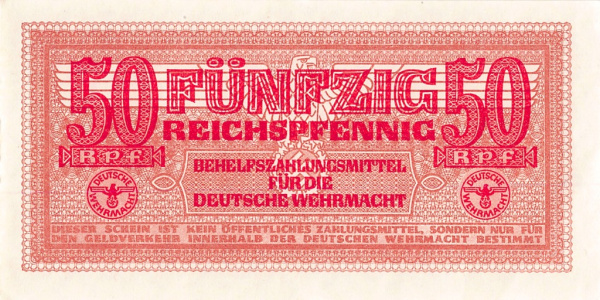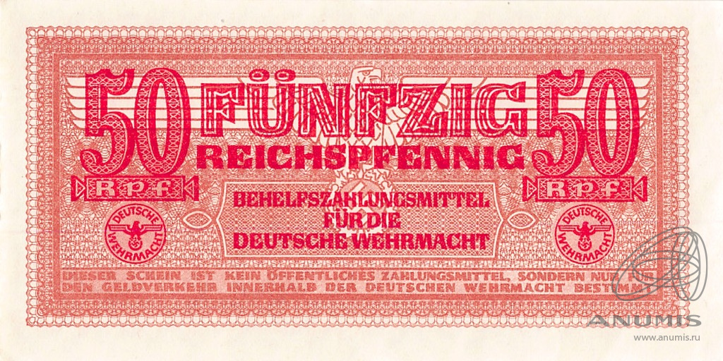 50 рейхсмарок выпуск для военнослужащих Вермахта 1944. Коллекция Г. и Я. Абезгузов