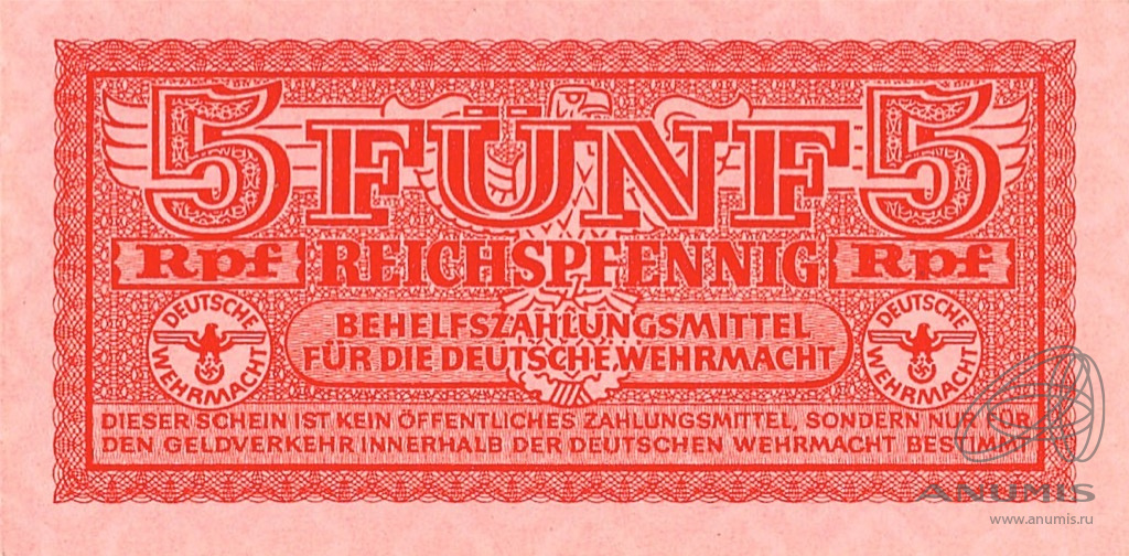 5 рейхсмарок выпуск для военнослужащих Вермахта 1944. Коллекция Г. и Я. Абезгузов
