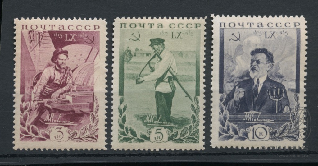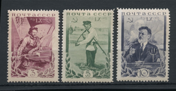 Лот негашёных марок серии «60-летие со дня рождения М.И.Калинина» 3 шт, **. общая стоимость по каталогу Загорского ред.2023 г. = 1 800 руб. для **