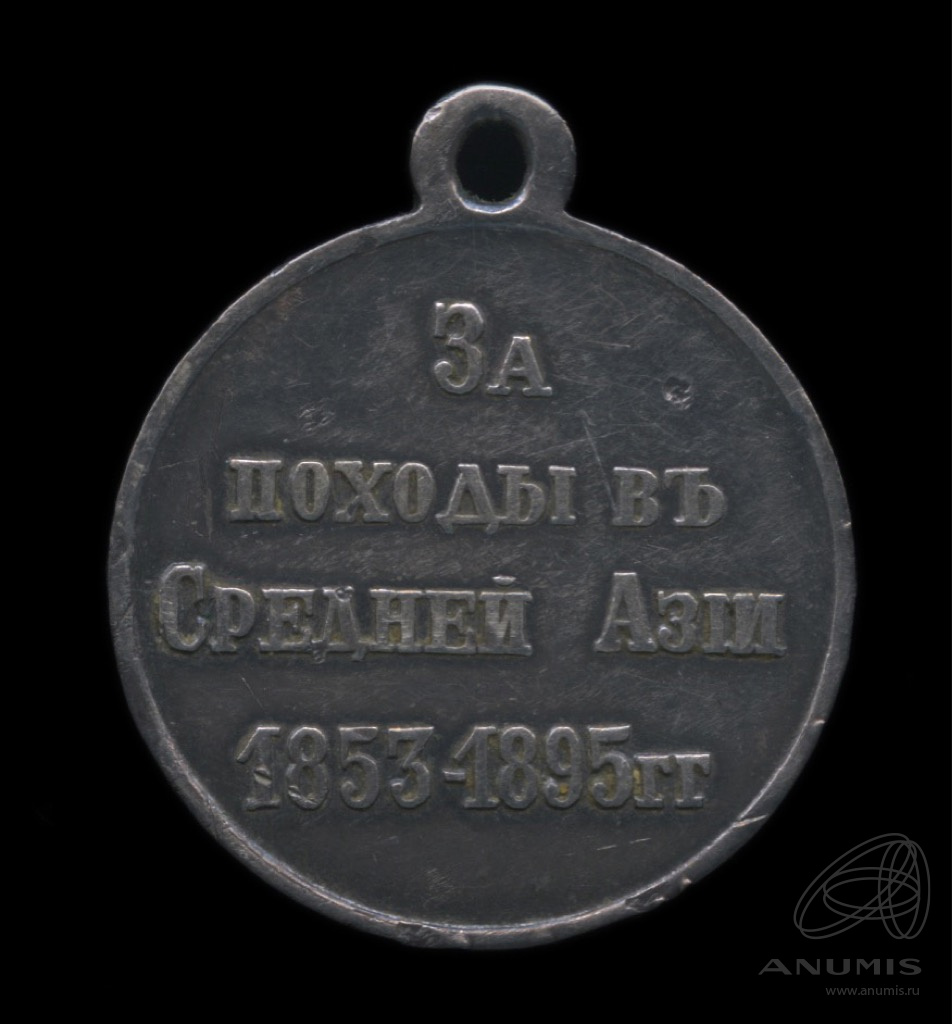 Медаль «За походы в Средней Азии 1853−1895 гг». Тяжелая. серебро, Мондвор. Вес 12,5 грамма, диаметр 29 мм