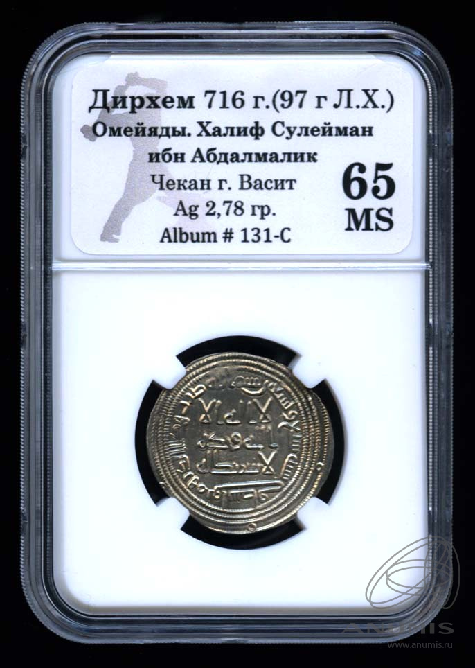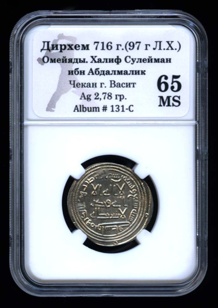 Дирхем. Омейяды. Халиф Сулейман ибн Абдалмалик. 716. В Слабе® MS 65